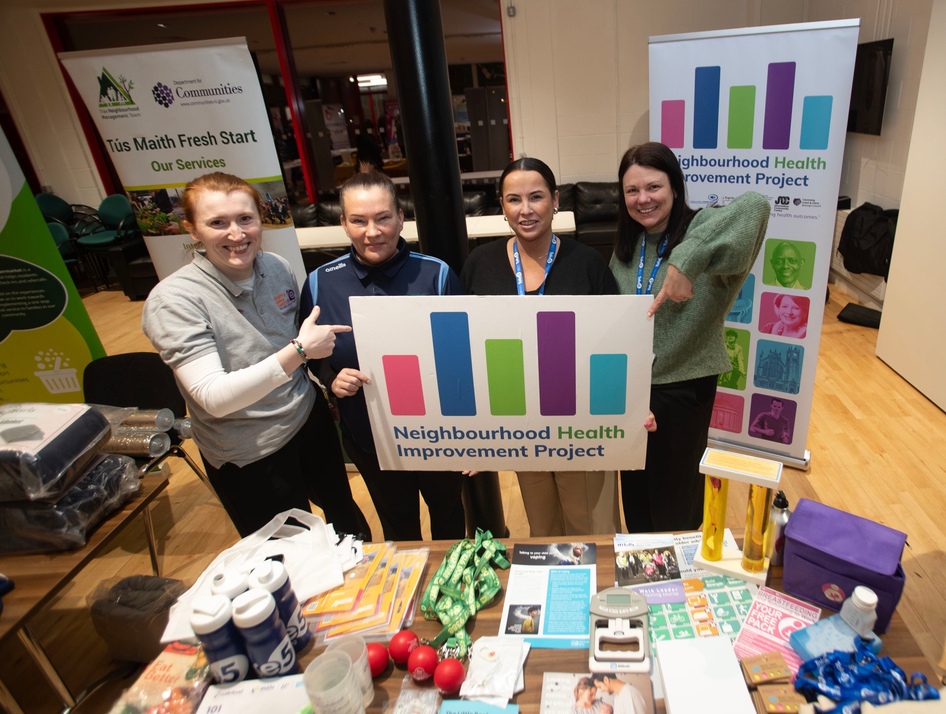 Group pictured at Tuesday's Health event in Creggan. From left, Julie White, Healthy Lifestyle Co-Ordinator, Old Library Trust, Lorraine Kivlehan, Health Development Officer, NHIP, Patti Thornton, NHIP Co-Ordinator, WHSCT and Pamela McMullan, Obesity Project Support Worker, WHSCT.