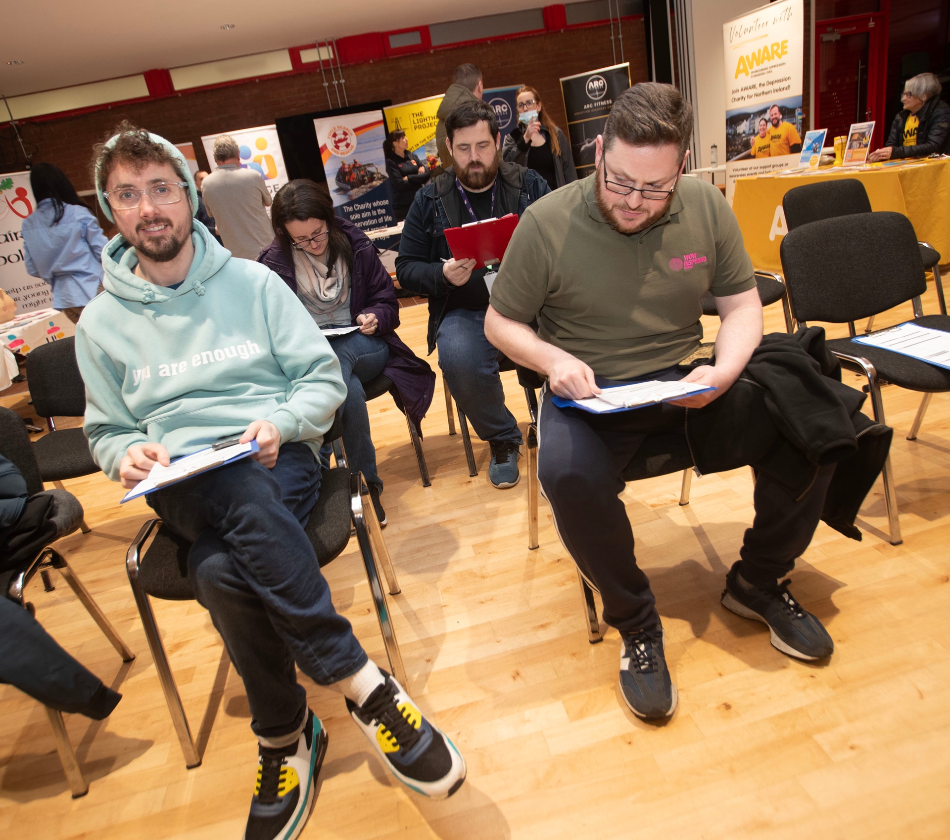 Some of those in attendance filling out health questionnaires on Tuesday night.