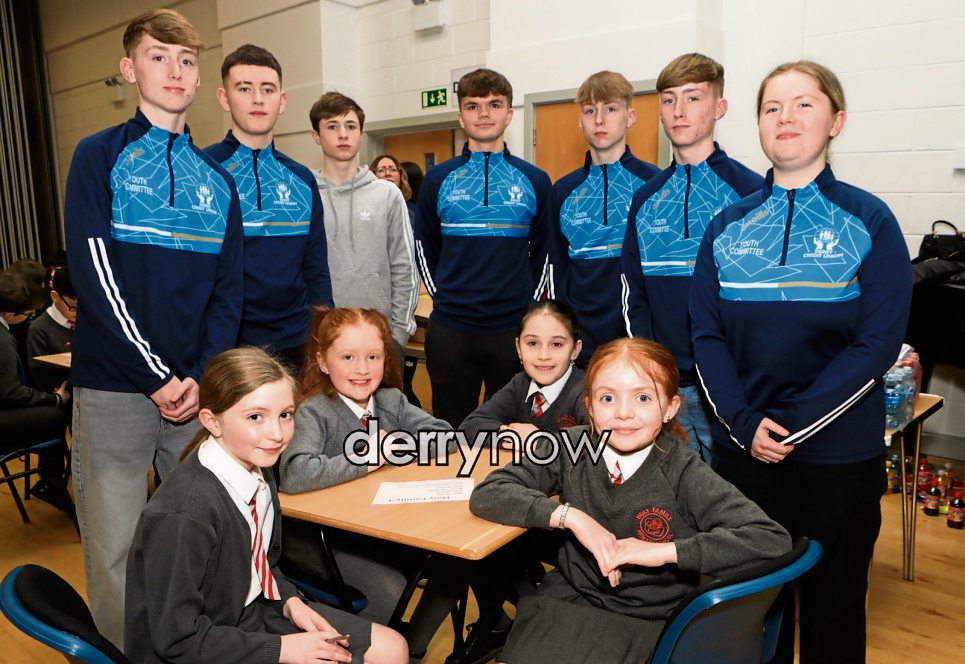 Holy Family PS quiz team 4 who took part in the ILCU Schools Quiz hosted by Derry Credit Credit Union. Included are member of the CU youth committee. (Photos - Tom Heaney, nwpresspics)