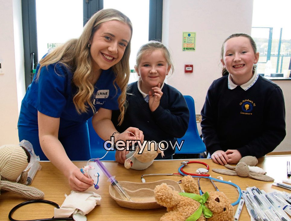 Elaine at the ear, nose and throat table with Sophie and Hailey.