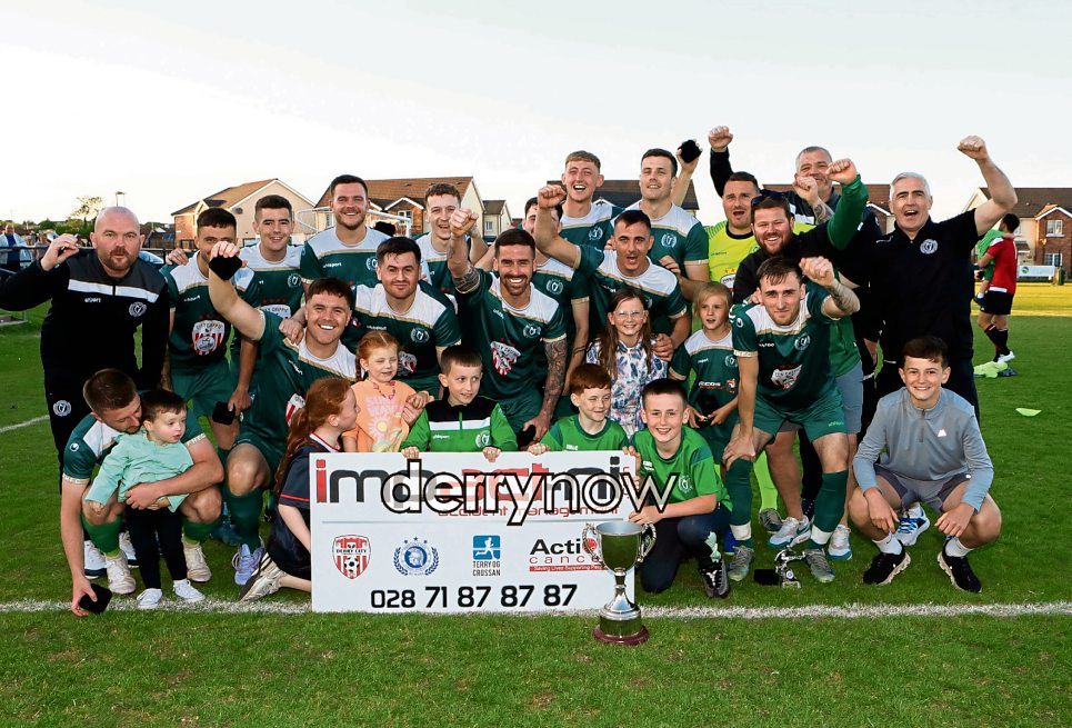 Foyle Harps team celebrating winning the Thomas "Burkey" Cup. (Photos - Tom Heaney, nwpresspics)