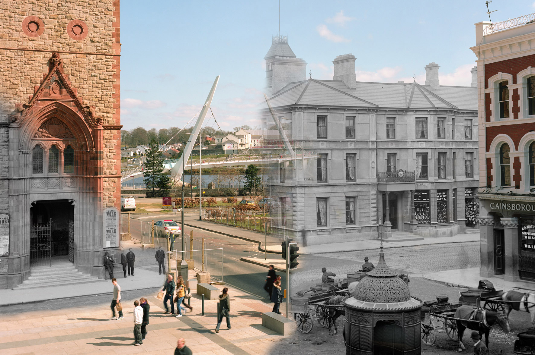 The former City Hotel at Foyle Street sits alongside the Guildhall and Derry's Peace Bridge.