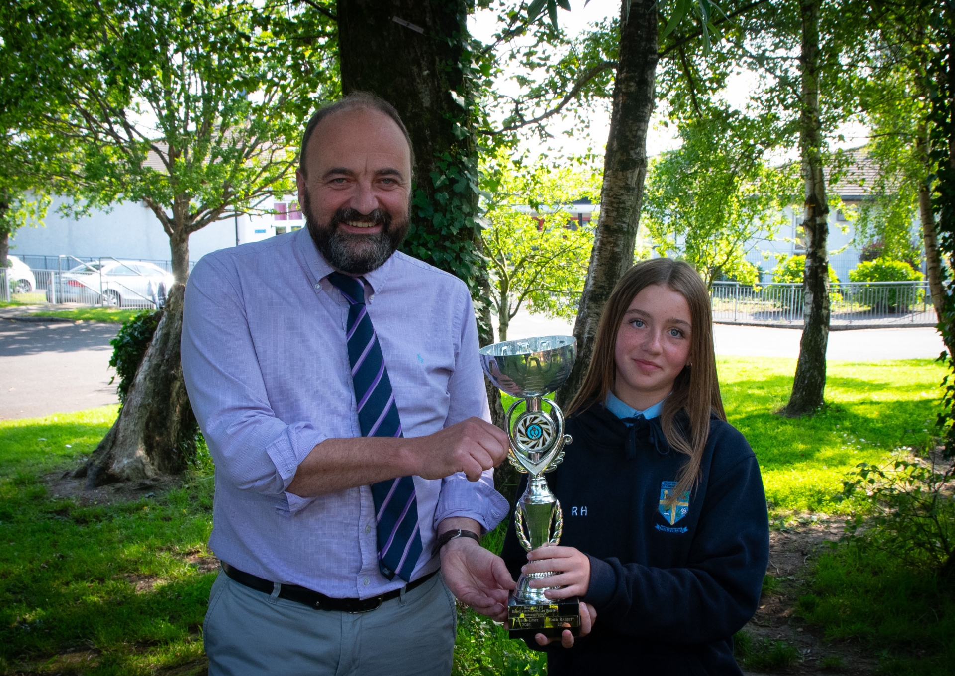Rhionagh Horner, Improvement in Sport Award receiving her trophy from Mr. Friel on Thursday.