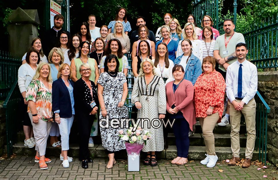 Joyce Loge, principal, Longtower PS with staff at a function to mark her retirement. (Photos - Tom Heaney, nwpresspics)