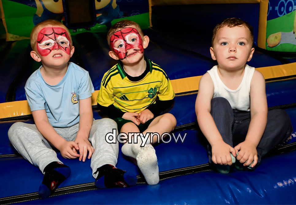 Children taking a rest on the bouncy castle at the Naiscoil Cholmcille fun day held in Shantallow Community Centre.
