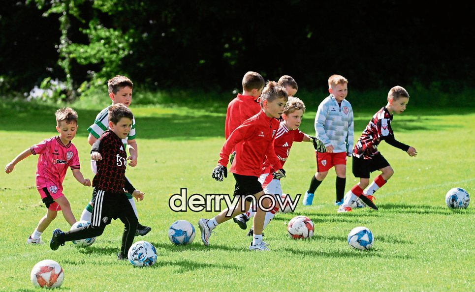 Young footballers testing their skills at the Culmore Football Club, Ryan McBride Summer Camp.