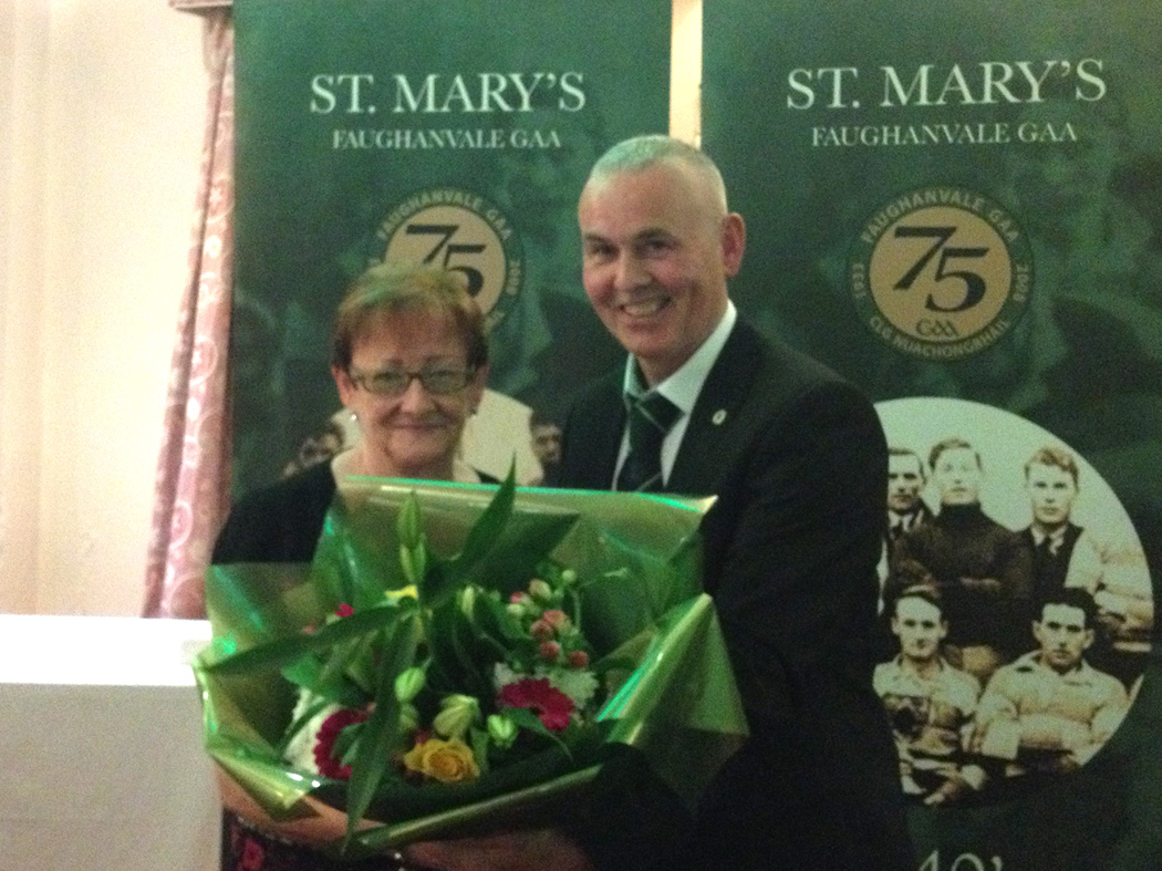 Eamon King presents Veronica Smith with flowers.