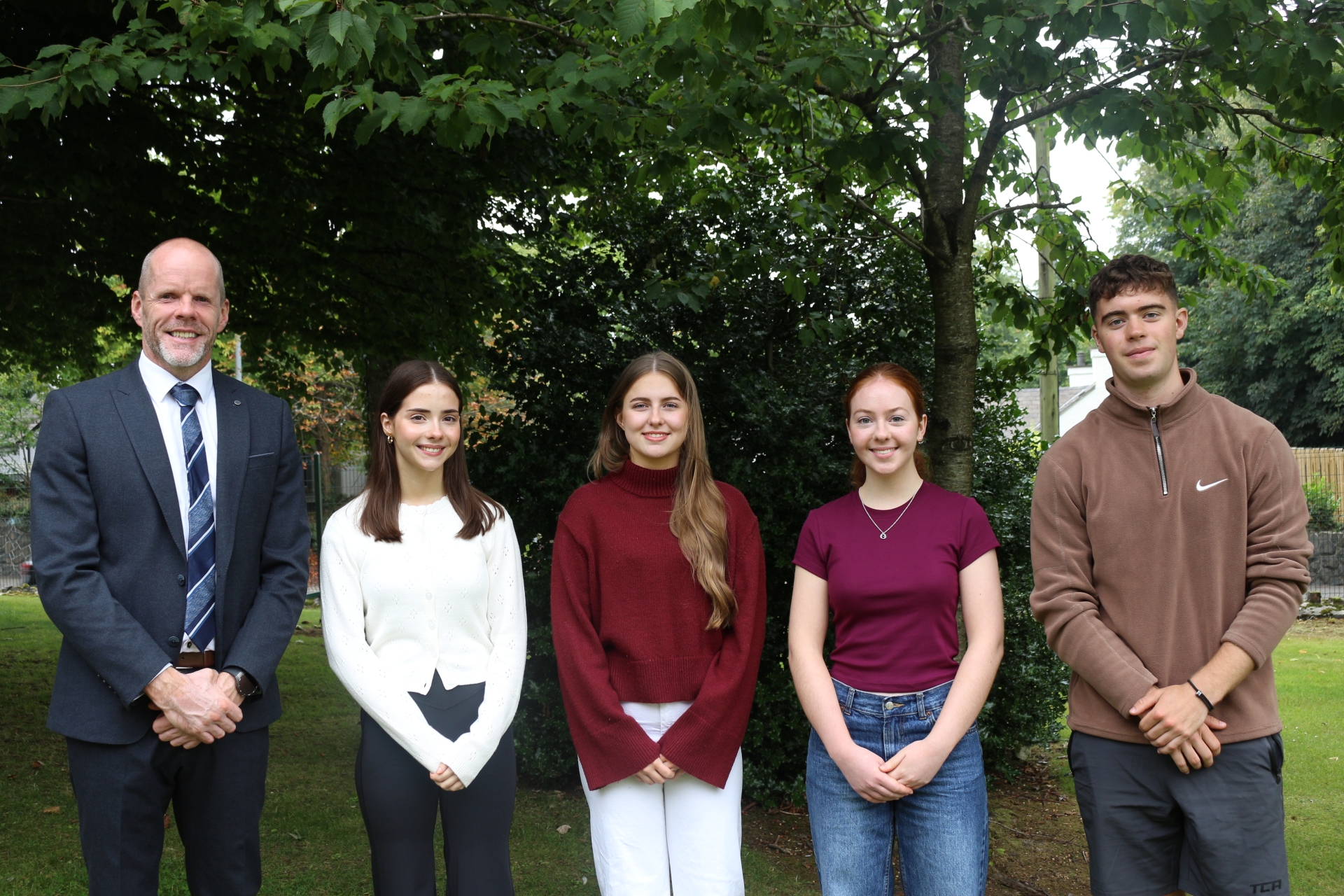 Principal Mr Paul McClean with pupils who were awarded 3 A*.