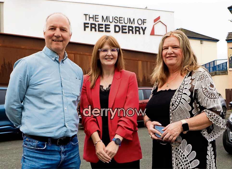 Minister for the Economy Caoimhe Archibald on a visit to the Museum of Free Derry, with Tony Doherty, chairman, Bloody Sunday Trust, and Maeve McLaughlin, Museum of Free Derry. (Photos - Tom Heaney, nwpresspics)