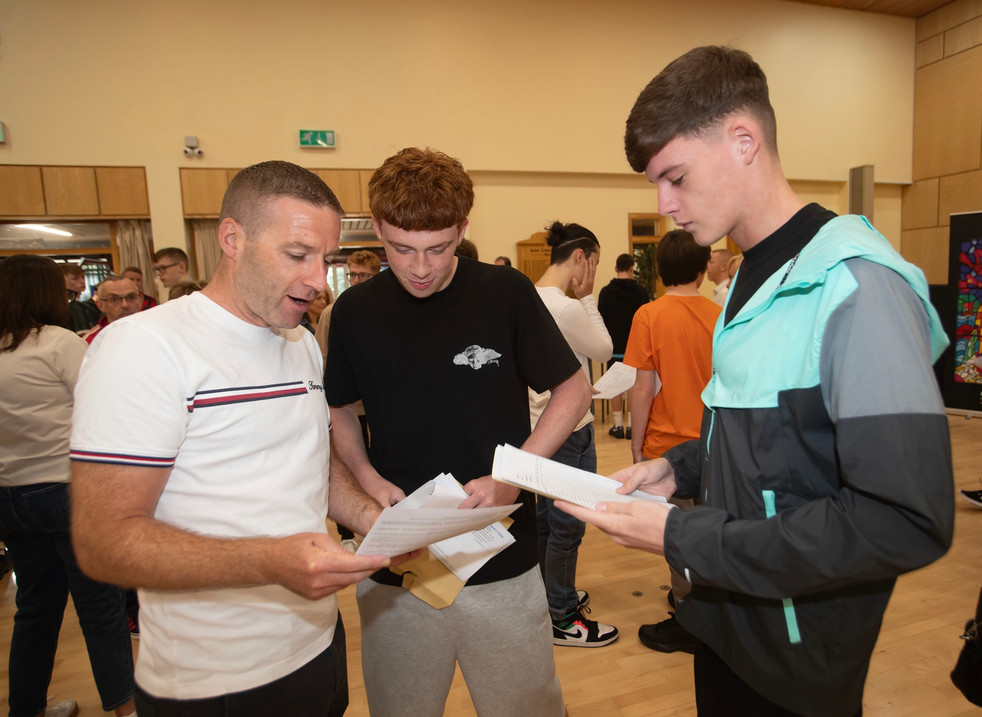 Mr. Ryan Horner, teacher, assisting students with their results at St. Columb's College.