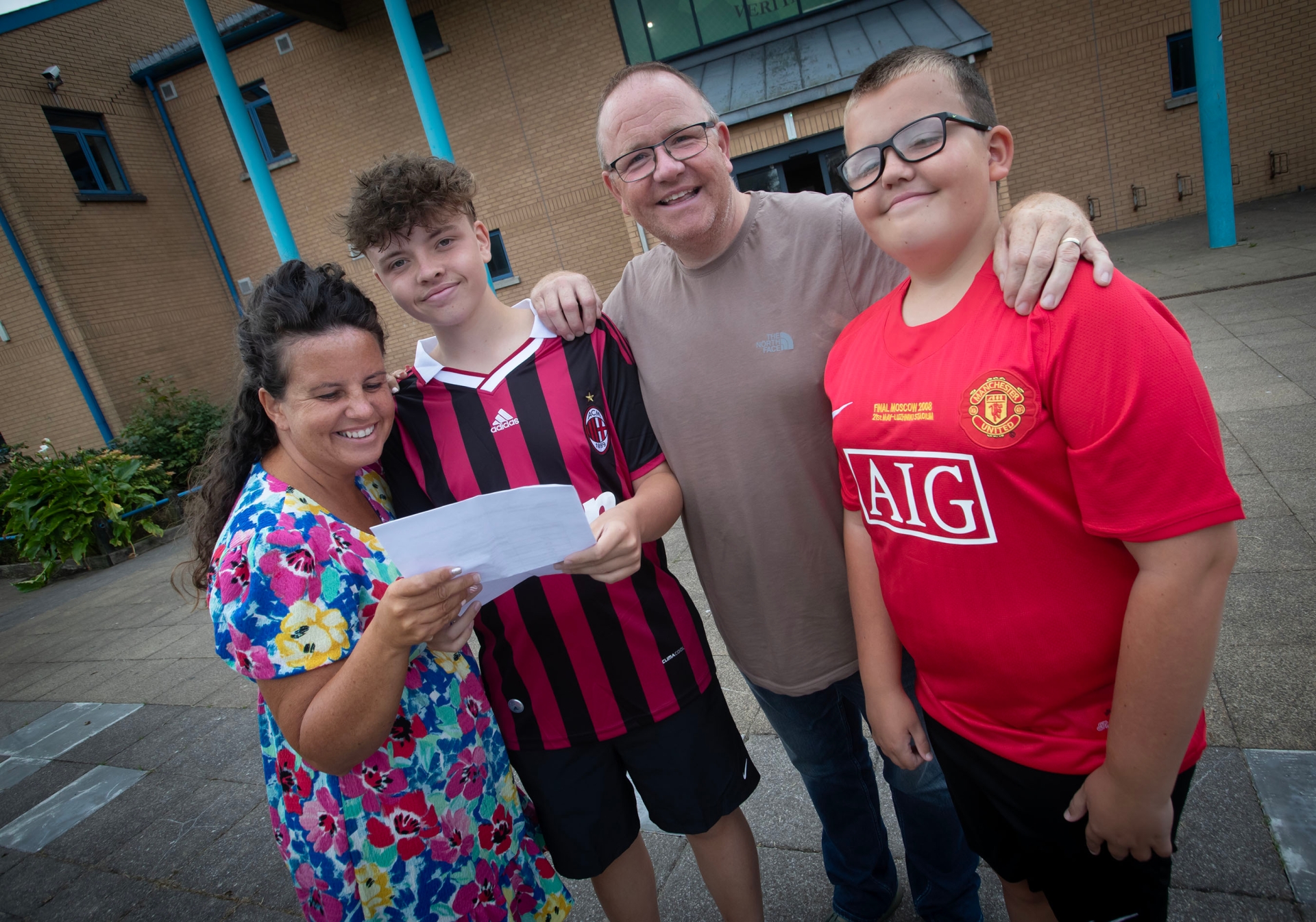 A happy Ben Curran proudly shows his GCSE results to the family.