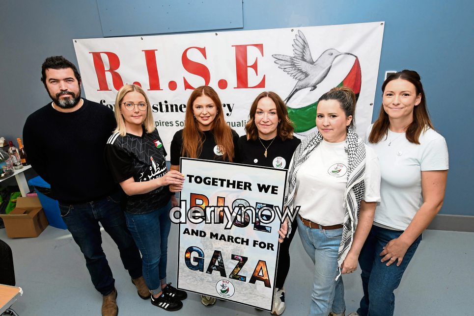 Some of the organisers, from left, Patrick Lynch, Hayley McGilloway, Gemma Nash, Michelle Leonard, Grainne McLaughlin and Lucia Owen, pictured at the Bingo for Palestine fundraising evening in Shantallow Community Centre.