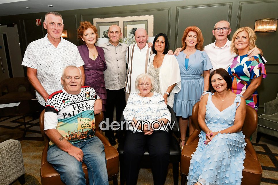 Mary Nelis pictured with her children and their partners during her 90th birthday celebrations at the Ebrington Hotel.