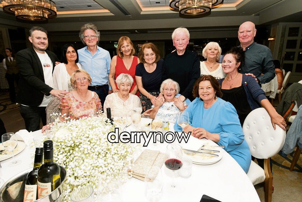 Mary Nelis pictured with some of the guests at her 90th birthday celebrations at the Ebrington Hotel.