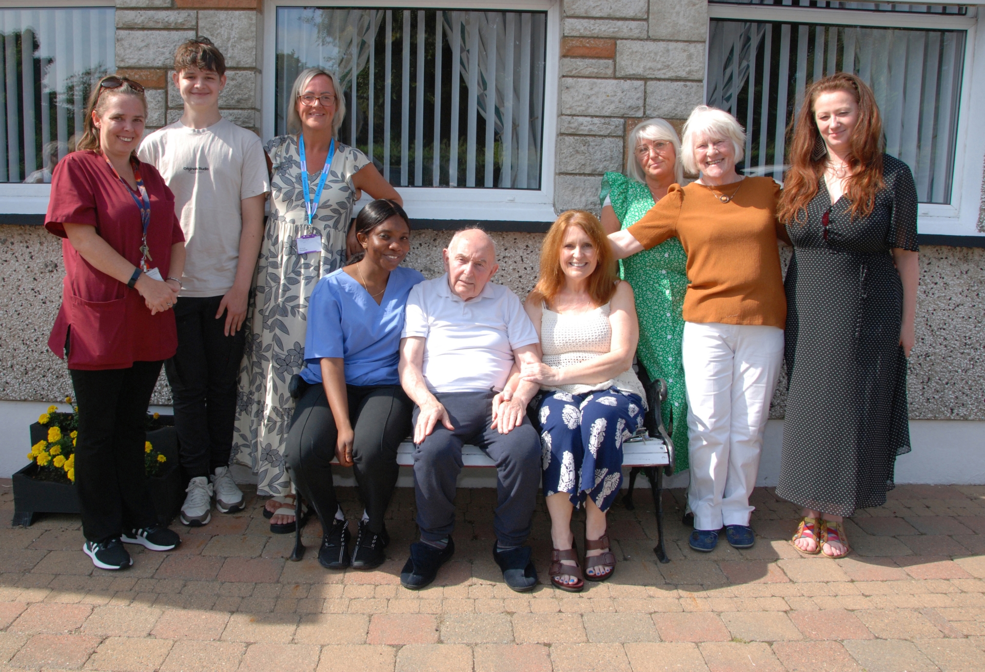 Owen Mor Care Centre Home Activities staff, Charlene Hutton, Owen Mor Care Centre volunteer, Matthew Hynds, Owen Mor Care Centre Manager, Joy Hynds, Owen Mor Care Centre Care Assistant, Josephine Annin, Owen Mor Care Centre home resident, Seamus Conway, Colette McLaughlin, Owen Mor Care Centre Senior Care Assistant, Michaela Cheetham, Mary Conway and Owen Mor Care Centre Activities Assistant, Leanne Doherty.