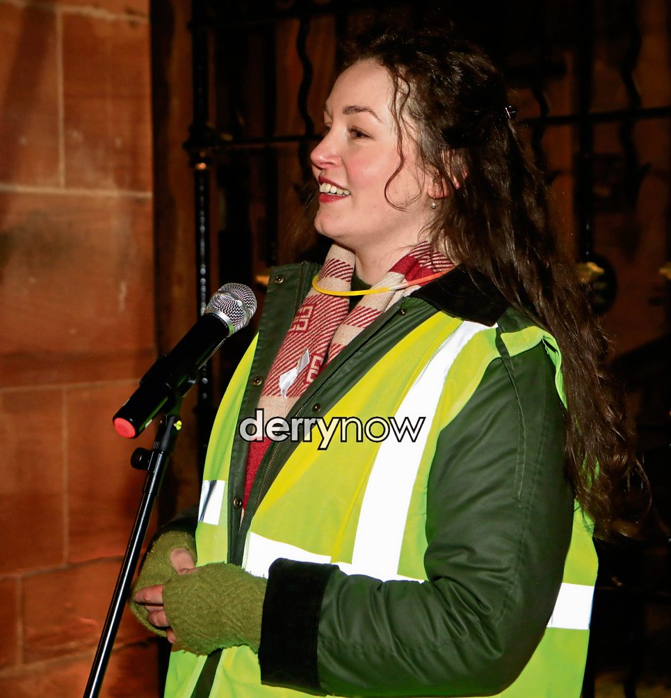Hollie Reed speaking at the Reclaim the Night march from Ebrington Square to Guildhall Square.