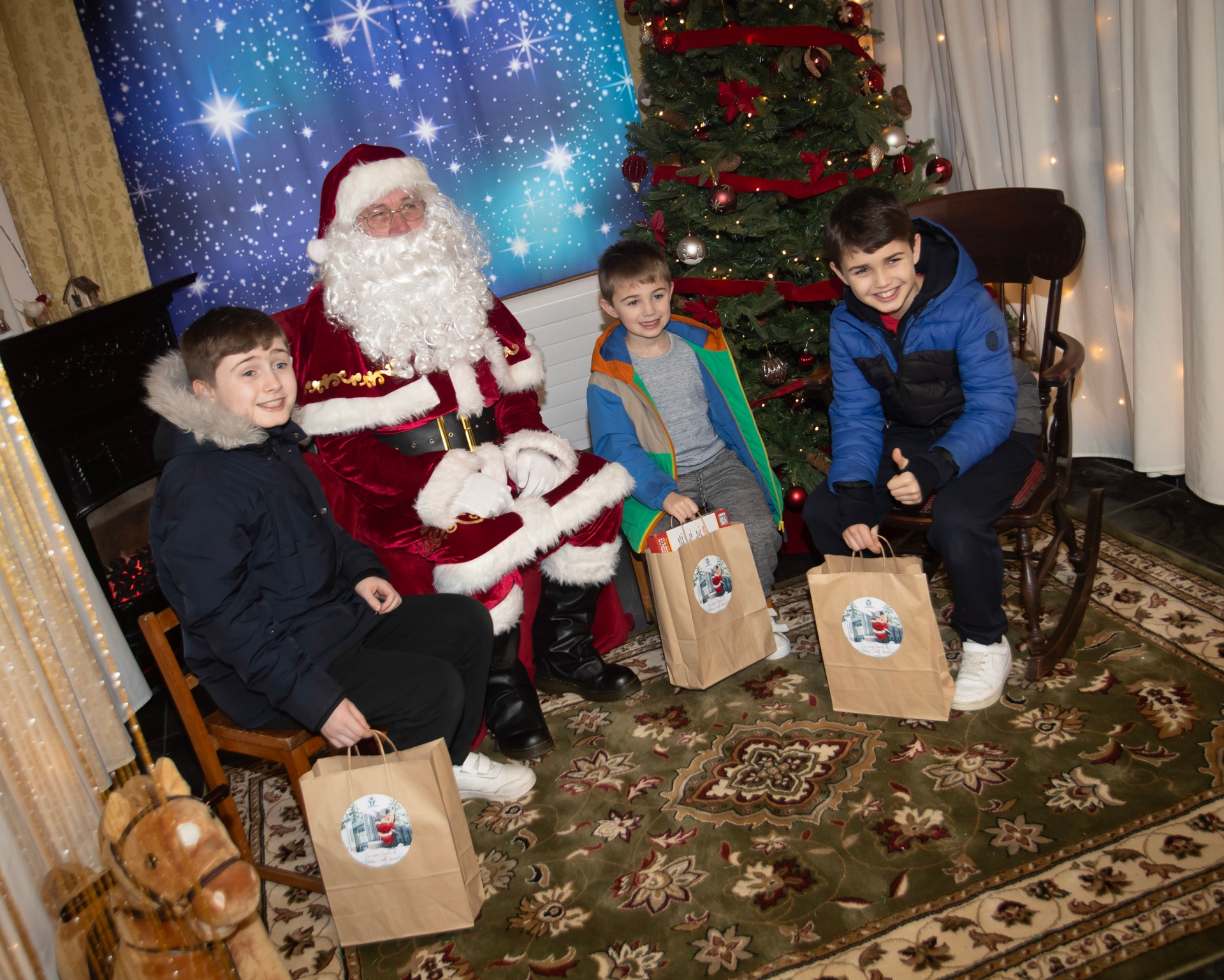 One of the many families getting a photo and collecting a present from Santa on Saturday at Derry Credit Union.