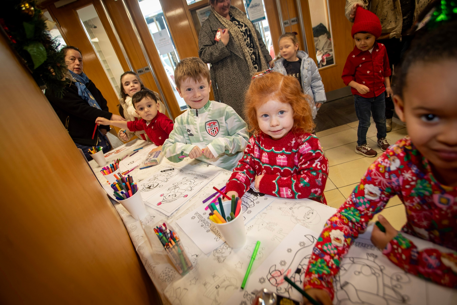 Some budding young artists show off their Santa Colouring Skills during Saturday's event at Derry Credit Union.