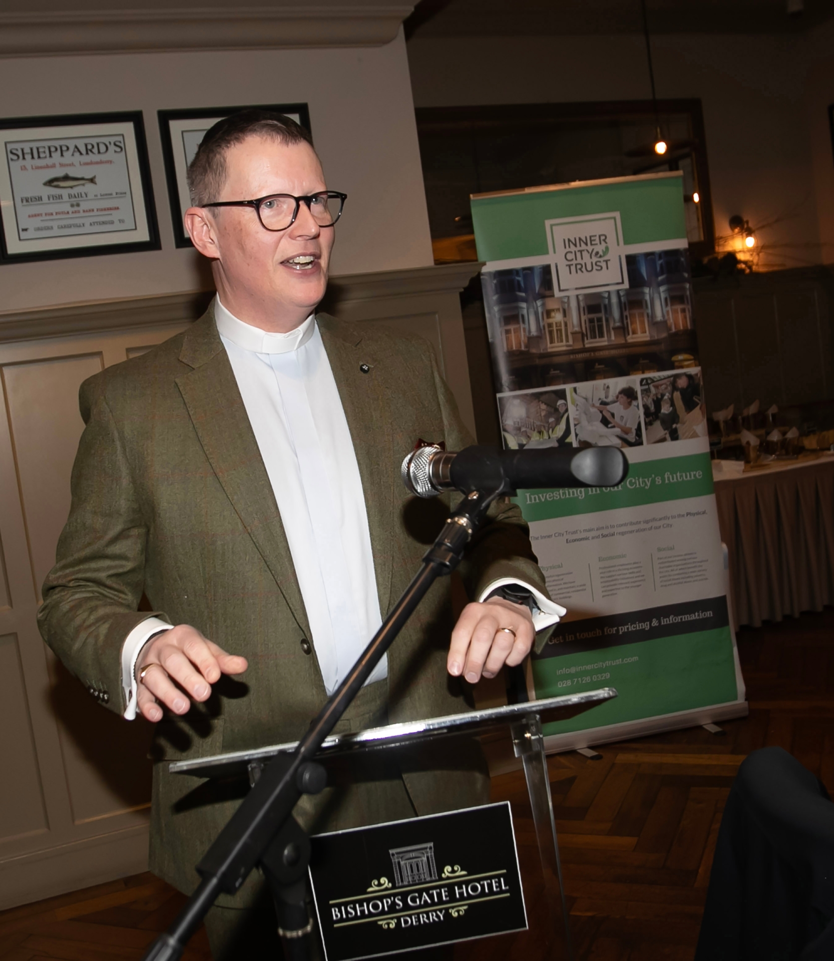 The Rev. Robert Miller, chair, addressing the attendance at Thursday's Inner City Trust's Annual Christmas Giving event at the Bishop's Gate Hotel.