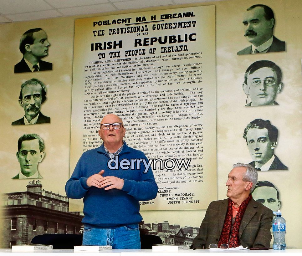 Former Republican prisoner Kevin Campbell speaking at the launch of IRA Republican hunger striker Laurence McKeown book - prison memoir1 981-1992 "And Flowers Grew Up through the Concrete" held in the Sinn Fein Centre, Rathmor. (Photos - Tom Heaney, nwpresspics)