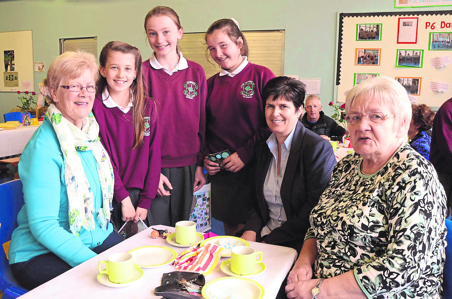 Kathleen Convery, Anne McCorry and Mary Convery with Rhianne, Annie and Coleen at the coffee morning