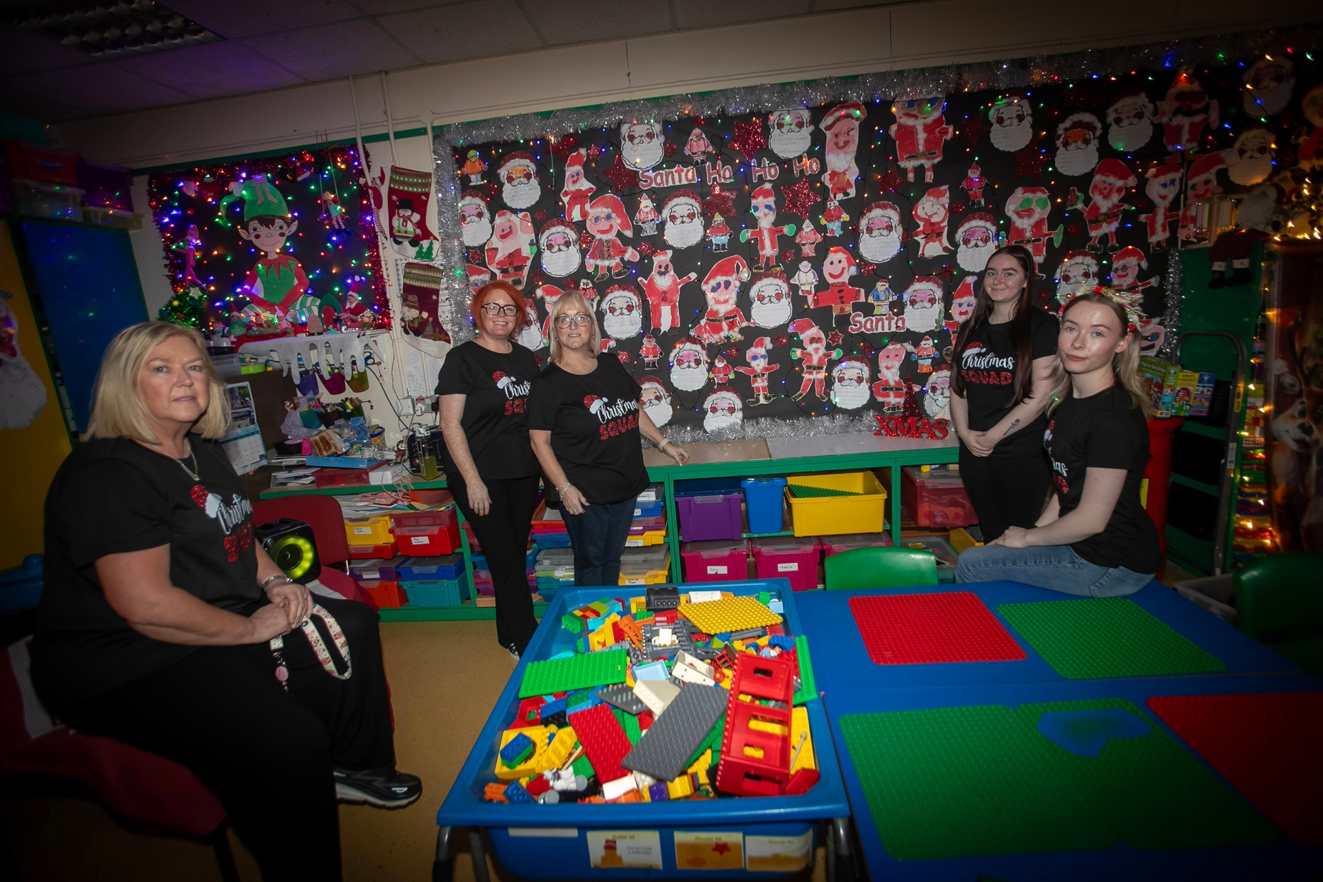 A number of the Classroom Assistants pictured in one of the more festively decorated classrooms.