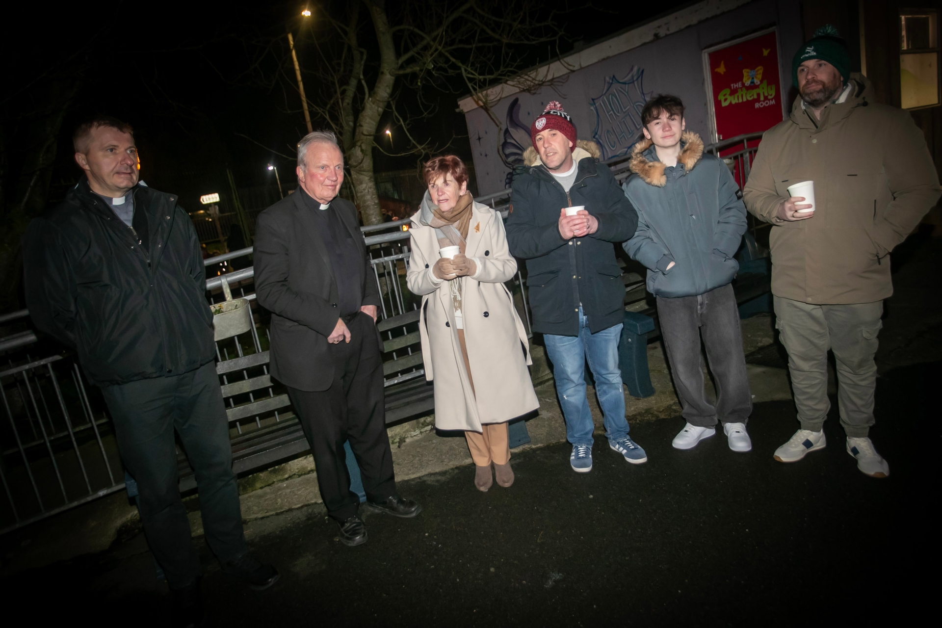 Bishop Donal McKeown and Fr. Ignacy Saniuta pictured at Holy Child Primary School with Sylvia O'Donnell (Charlie's wife), sons David and Peter and grandson Aaron. (Photos: Jim McCafferty Photography)