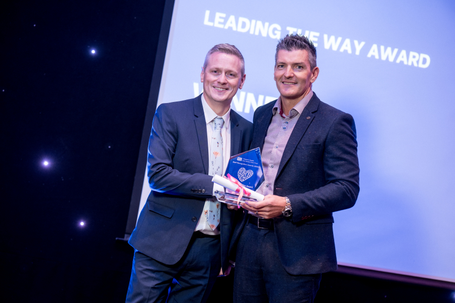 Seamus Brolly, Principal Social Worker, Community (Northern Sector) is presented with his Leading the Way award by Mark Gillespie, Director of Surgery, Paediatrics and Women’s Health.
