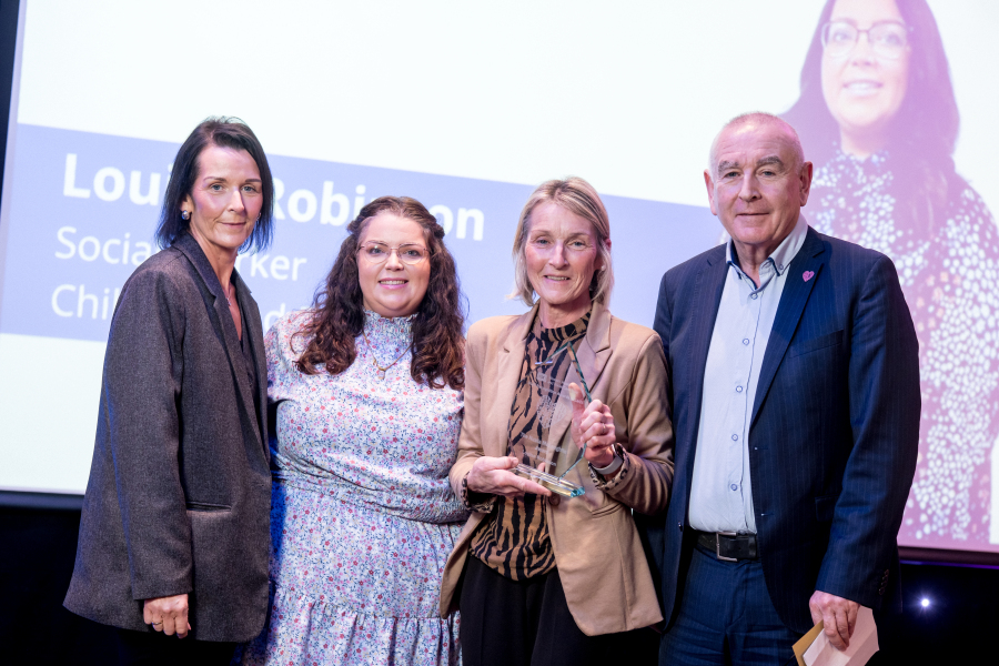Nuala McLaughlin Award was presented to Louise Robinson, Social Worker, Women & Children’s Services, Rossdowney House. Presenting the award are Nuala McLaughlin’s sister Catherine McKenna, Collette Sludden, and Dr Tom Cassidy, Director of Children & Family Services.