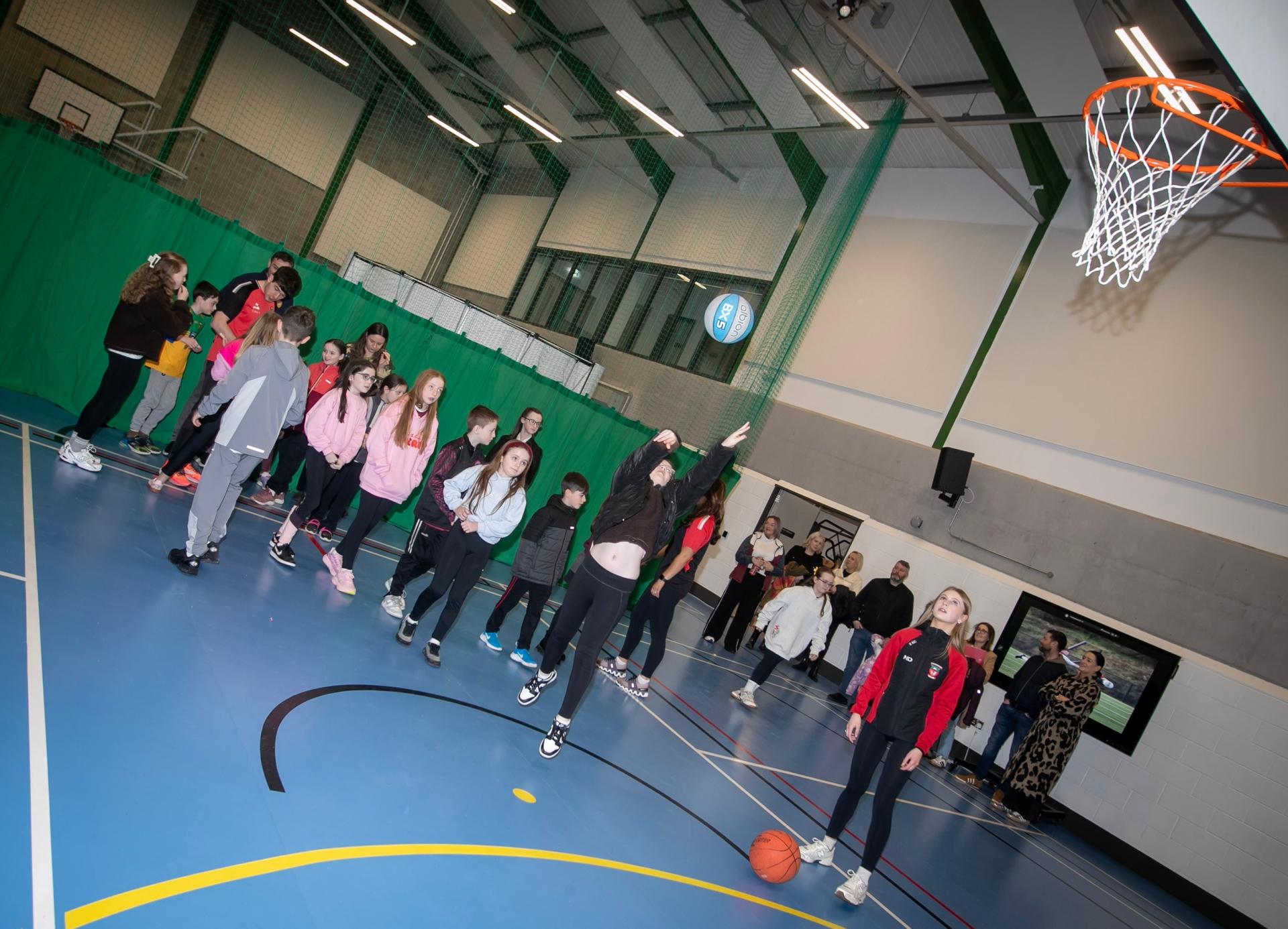 Some of the prospective P7 pupils trying out their basketball skills in the PE Department at Saturday's Open Day.
