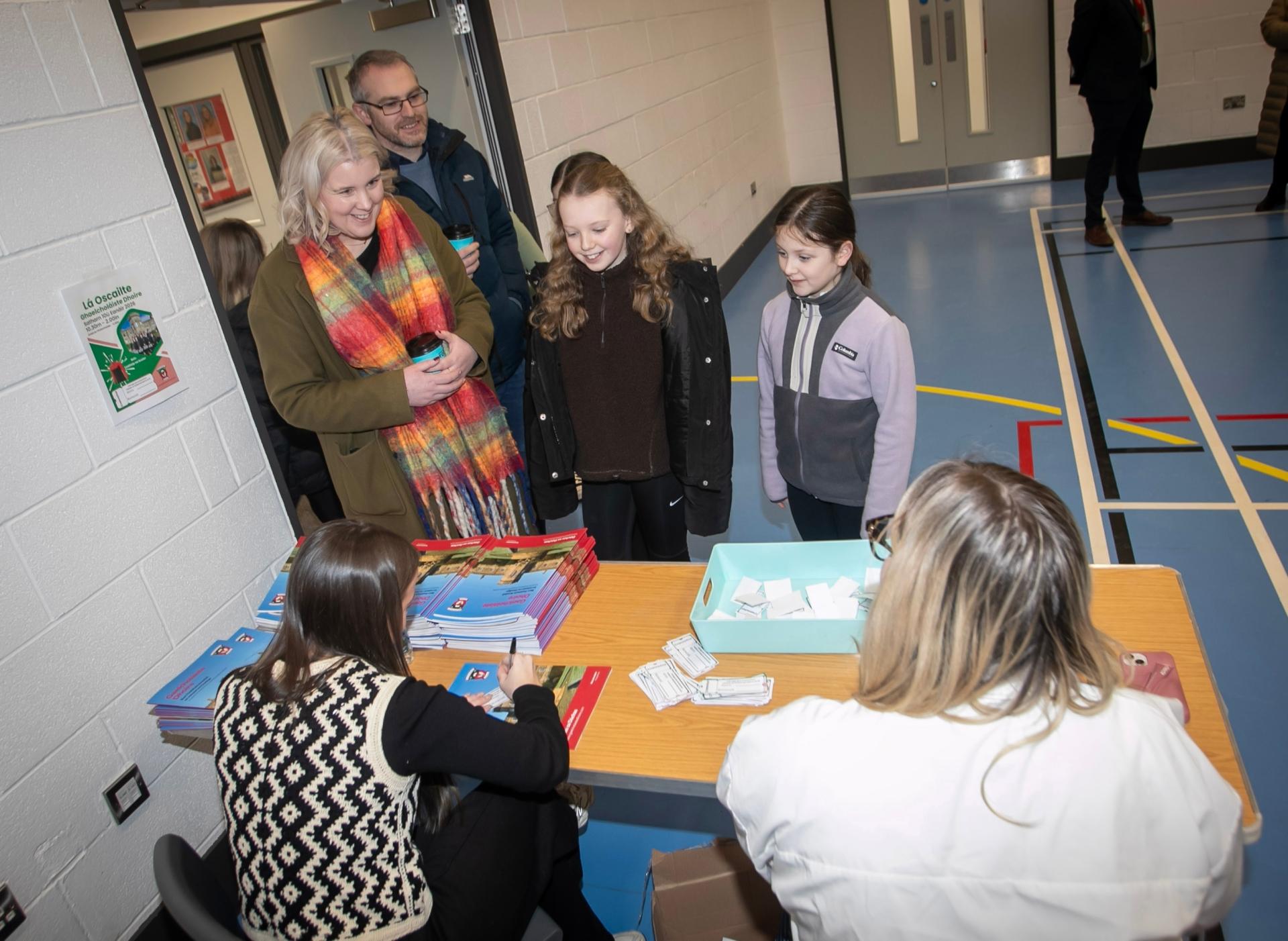 Families arriving for the Gaelcholaiste Dhoire Open Day on Saturday last.