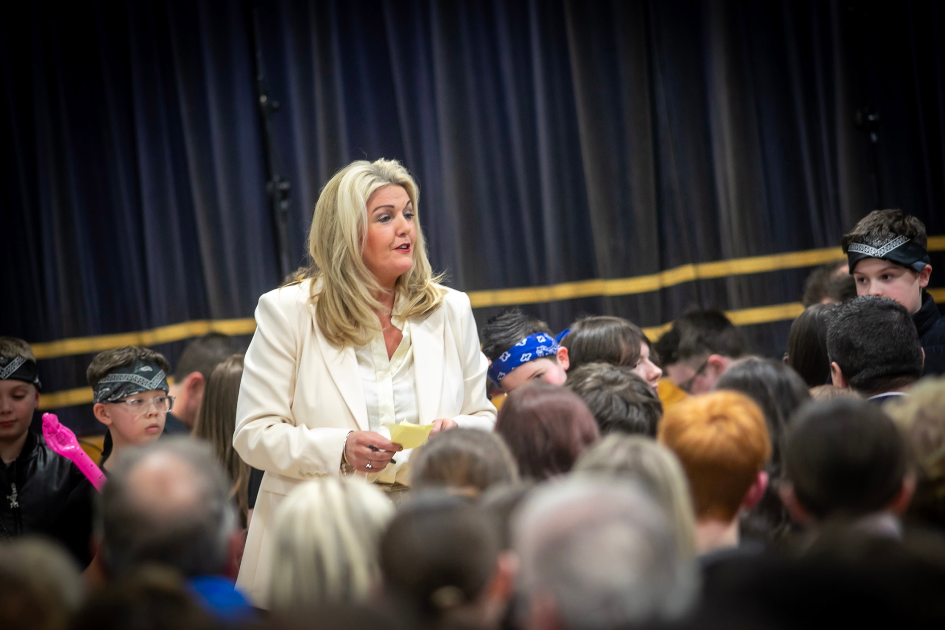 Principal Mrs. Ciara Deane addressing the audience at Thursday's finale in St. Joseph's Boys School.