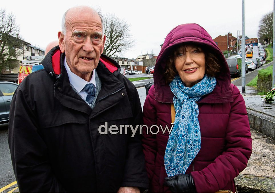 Michael McGonigle, Honorary Vice President Republican Sinn Fein pictured with Nora Canning, daughter of Sean Keenan, at The Sean Keenan Annual Commemoration in Fahan Street.