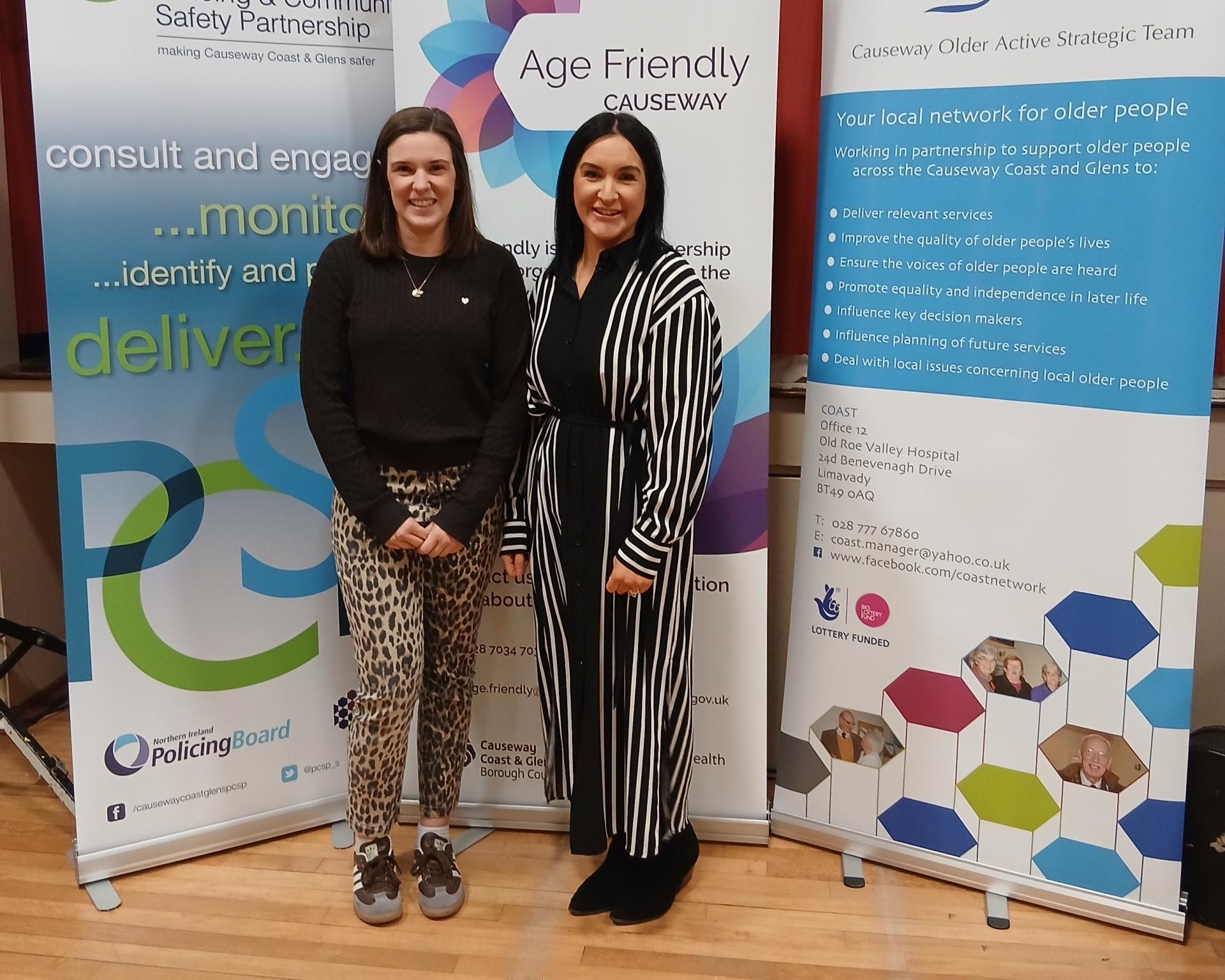 PICTURED ABOVE: Stephanie Scott, Age Friendly Co-ordinator, and Tori Lowbridge, COAST Project Manager, pictured at one of the Winter Wellbeing events delivered in partnership with Causeway Coast and Glens Borough Council’s Age Friendly Programme.