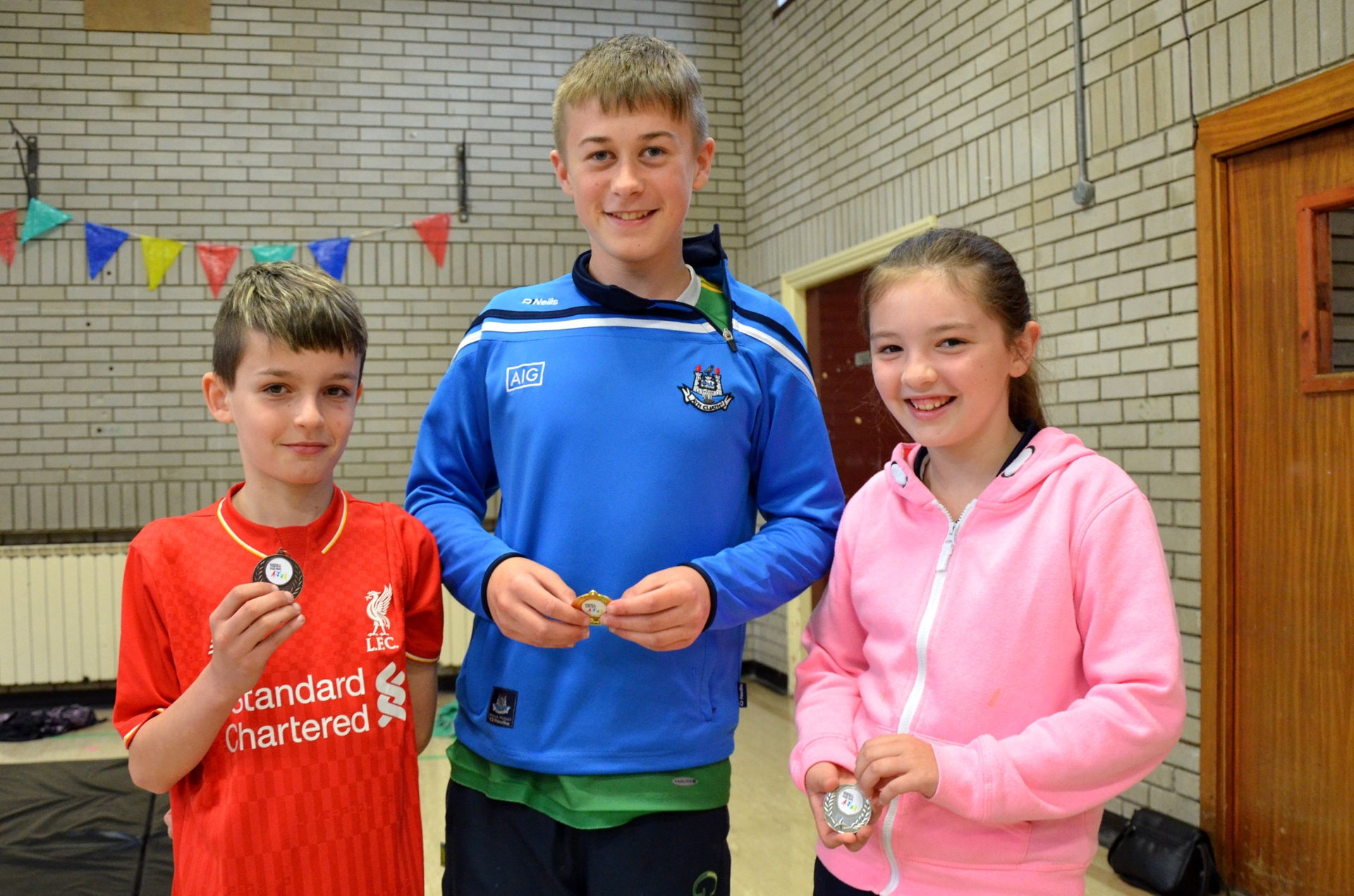 Michael, Jamie and Kayla - medal winners in the Wellie Throw