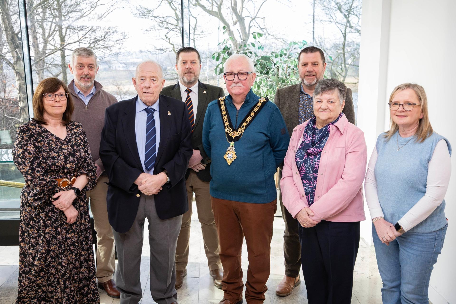 Derek and Valerie Hibbert of Garvagh, together with their family members, celebrating their Diamond Wedding Anniversary during a special presentation hosted by the Mayor of Causeway Coast and Glens.
