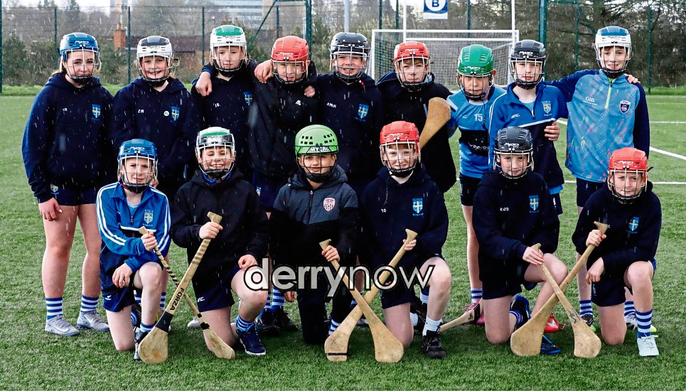 The Hollybush PS team at the Cumman na Bunscoil Hurling Blitz Championship held in the Waterside Shared Village.