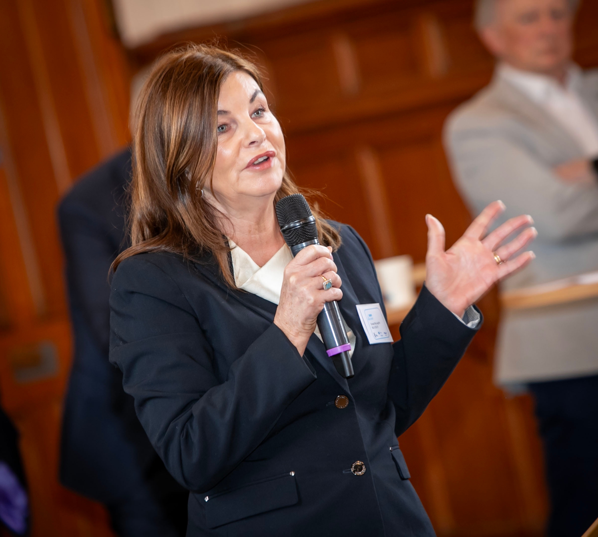 Foyle MLA Sinead McLaughlin posing a question to the panel on Thursday.