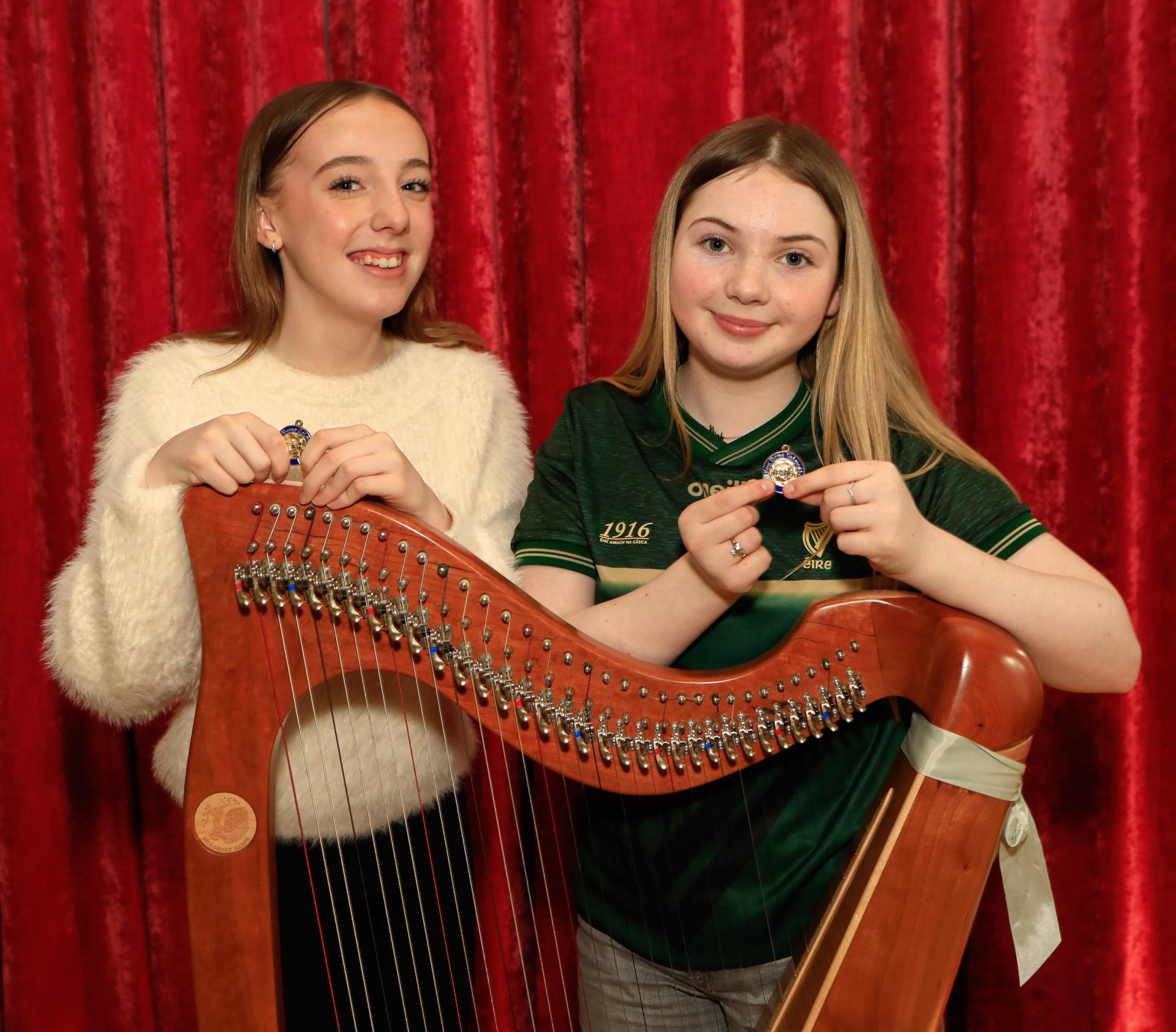 Duet winners, Rebecca Harkin and Aoibhe Nic Lochlainn, winners of the U15 small ensemble at Feis Doire Cholmcille.