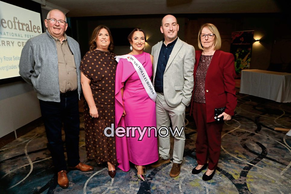 Contestant Aoife McGuiggan with parents Ursula and Stephen, at the Derry Rose of Tralee selection held in the Everglades Hotel. On right Colm and on right Bernie (grandparents)