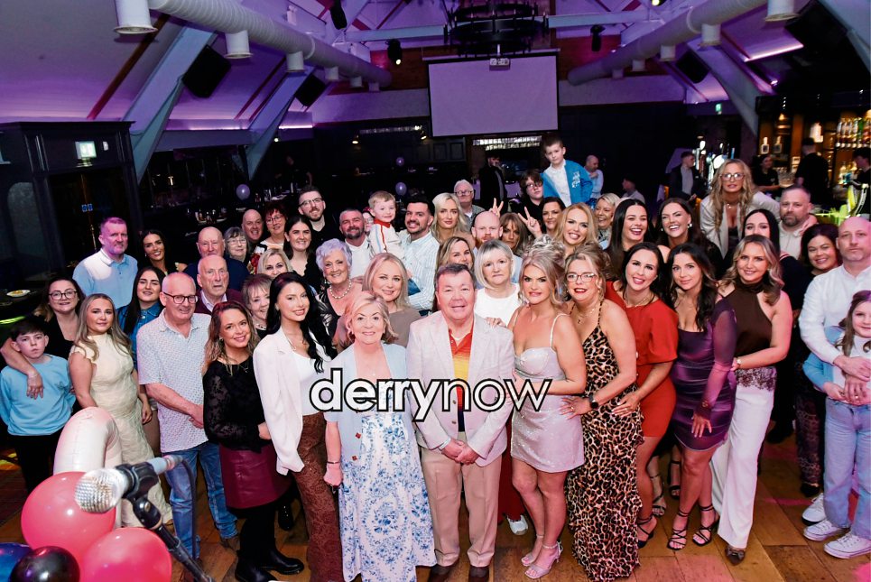 Charlie Harkin and his daughter Sinead Stewart enjoy their birthday party in the Cosh Bar with family and friends. (Photos - Kerrie Quinn, nwpresspics),