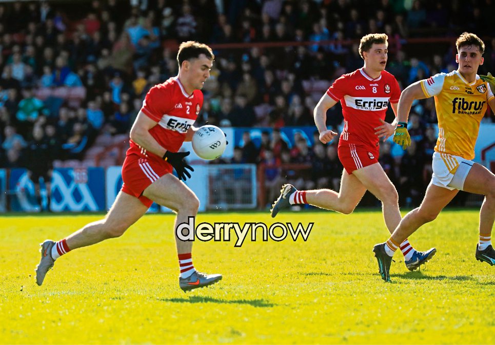 Derry’s Diarmaid Baker presses forward in the Ulster GAA Football Senior Championship quarter-final match against Antrim at Find Insurance Celtic Park. (Photos - Tom Heaney, nwpresspics)