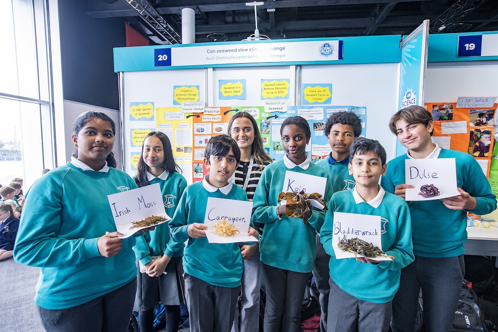 Pictured are students from Scoil Cholmcille, Letterkenny with their teacher at ESB Science Blast showcase in ICC Belfast. ESB Science Blast, the RDS led initiative, is a free and inclusive educational programme which actively encourages primary school students to lead their own scientific investigations. The event featured 21 schools from across Antrim, Armagh, Down, Derry, Fermanagh and Tyrone showcasing 29 STEM-related projects which explored a simple, thought-provoking scientific question, investigated by the students. The project exhibited by the students was “Can seaweed slow climate change?”-1749226063423.jpg)