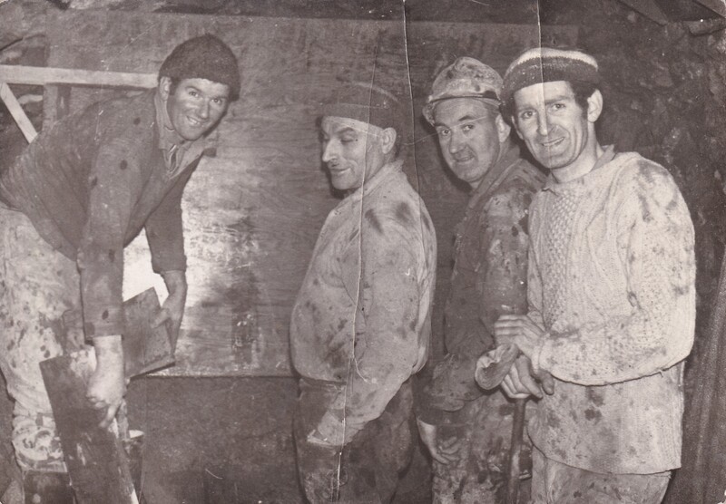 Brothers Dinnie Gallagher (far left) and John Gallagher (far right) originally from Tully near Dungloe pictured with Mick Durkin (from County Mayo) and John Floyd (from Ballybofey) working for the Cementation company on the interceptor sewer in Seafield, Edinburgh circa 1966. The dangerous nature of their working environment is conveyed by the condition of their work clothes and the lack of personal protective equipment. (Image courtesy of Mary Gallagher)-1751449360708.jpg)