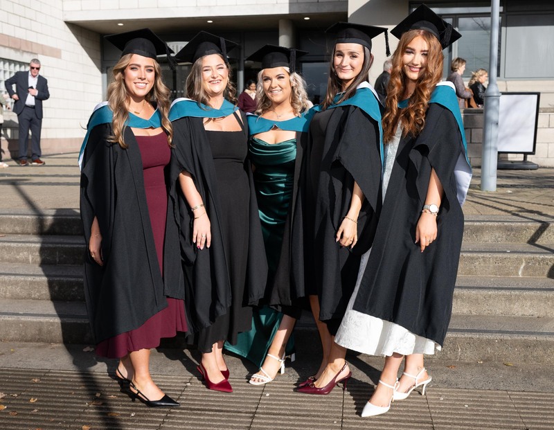 Pictured at the the Atlantic Technology University (ATU) Conferring in Letterkenny on Tuesday, October 28, are Ella Fitzsimons, Amy Manion, Jenny Waters , Jane Barrett and Kate McCauley, who all graduated in Veterinary Nursing. Photo: Clive Wasson