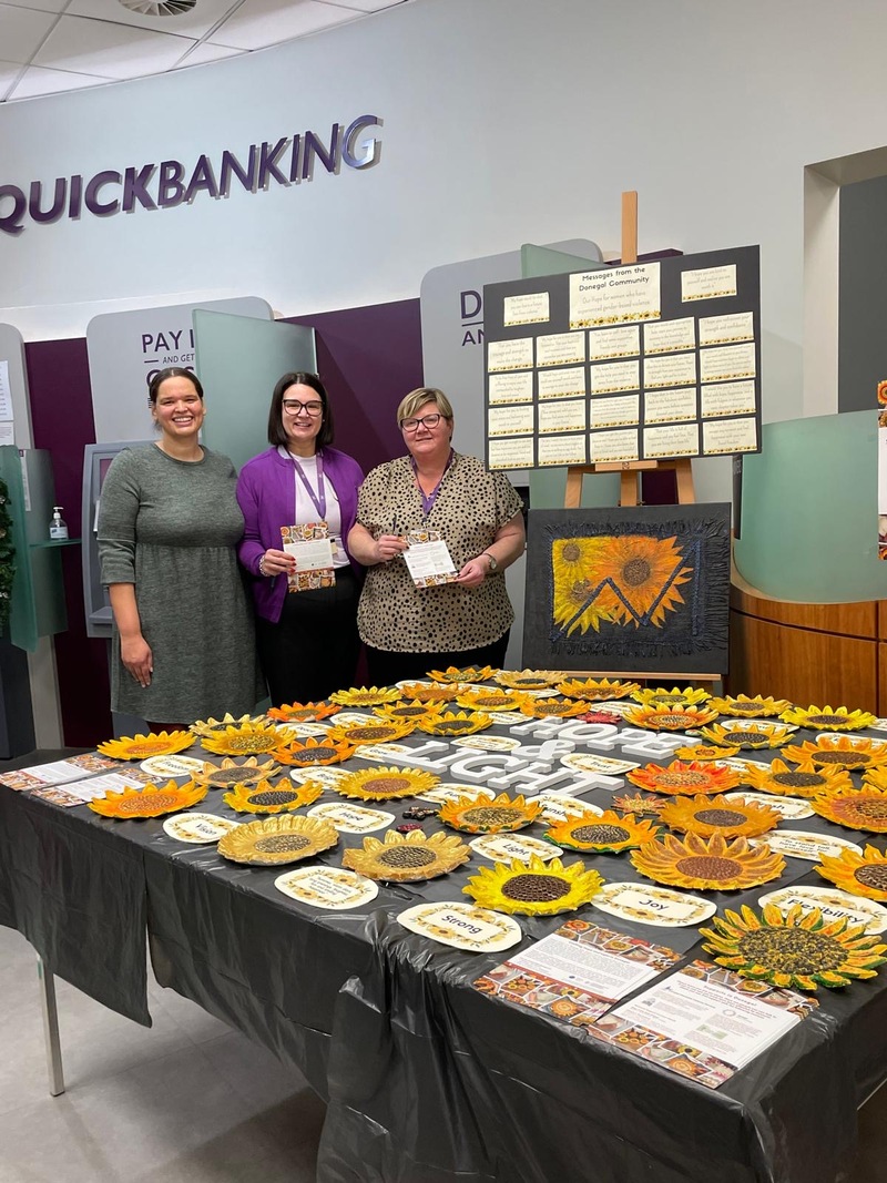 The collection, made up of over 40 unique handmade clay sunflowers, is now on display at the AIB branch in Donegal Town over the Christmas period until the New Year. Each sunflower represents hope, light and solidarity, and carries messages of encouragement for women who have experienced gender-based violence. Members of the public are encouraged to visit the display while in Donegal Town. The AIB branch is open Monday to Friday, 10am to 4pm, and is closed on bank holidays.
