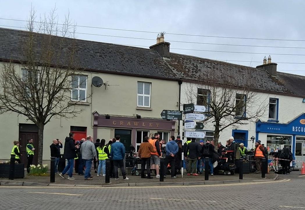 Filming on Walk the Blue Fields, an adaptation of a romantic short story by Claire Keegan, is due to continue until March 20 and runs from 1pm to 11.30pm each day. The story is set in Bunclody, Co. Wexford with the signposts at the centre of the town changed to reflect this.