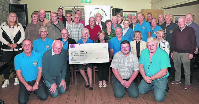 Laois Hospice Chairperson, Mary Delaney, accepting a cheque for €51,217 from Laois Vintage Ltd along with Laois Vintage volunteers and Hospice committee members. (Photo by Michael Scully.)
