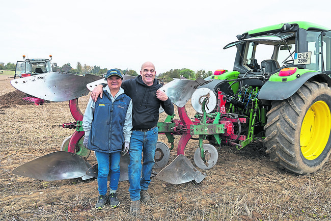 Keir Lilley assisted by his wife Sandy Semerano at the Ballylinan & District Annual Ploughing Match. (Photo by Alf Harvey.)