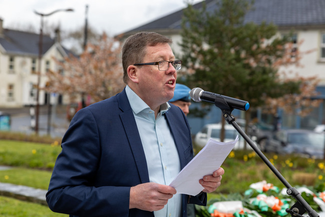 Chair of the Col. Fitzmaurice Society, Alan Phelan, speaking at Fitzmaurice Place Portlaoise.